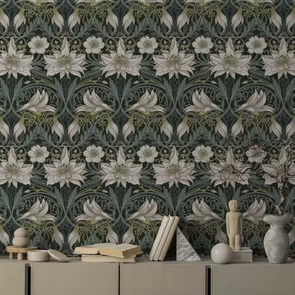 Papiers peints Composition Art nouveau avec des lys sur fond sombre Nr. a00696