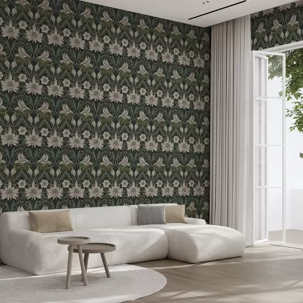 Papiers peints Composition Art nouveau avec des lys sur fond sombre Nr. a00696