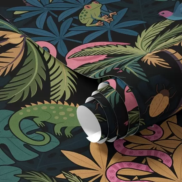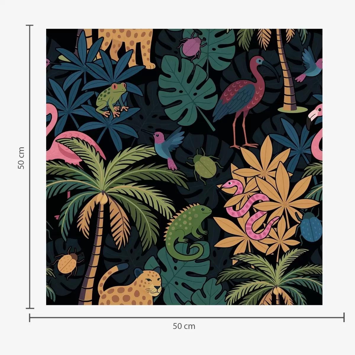 Papiers peints Animaux tropicaux colorés parmi le feuillage sur fond sombre Nr. a00701