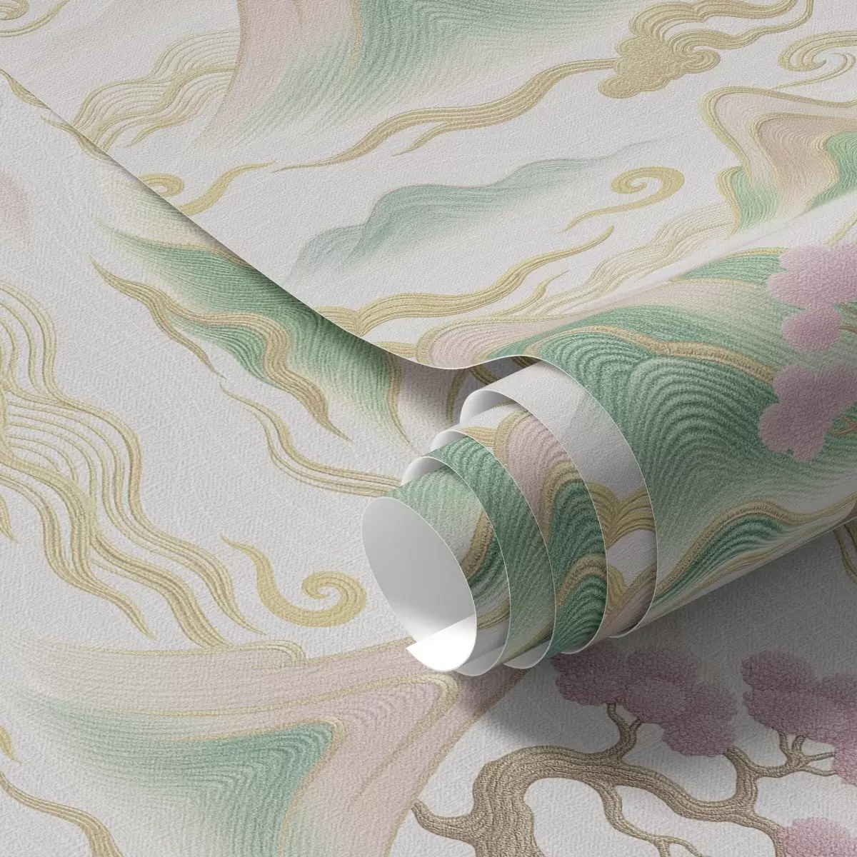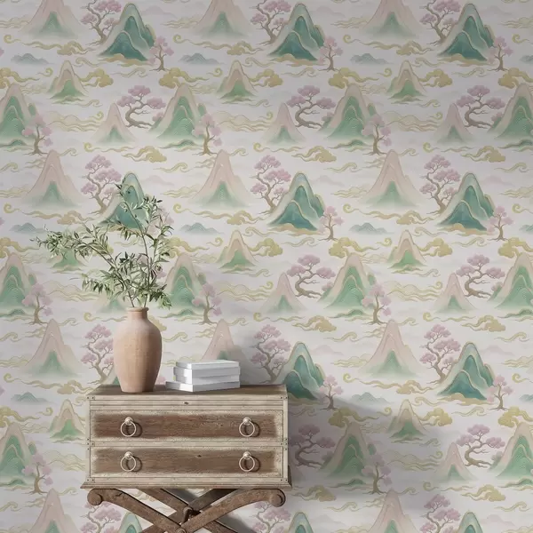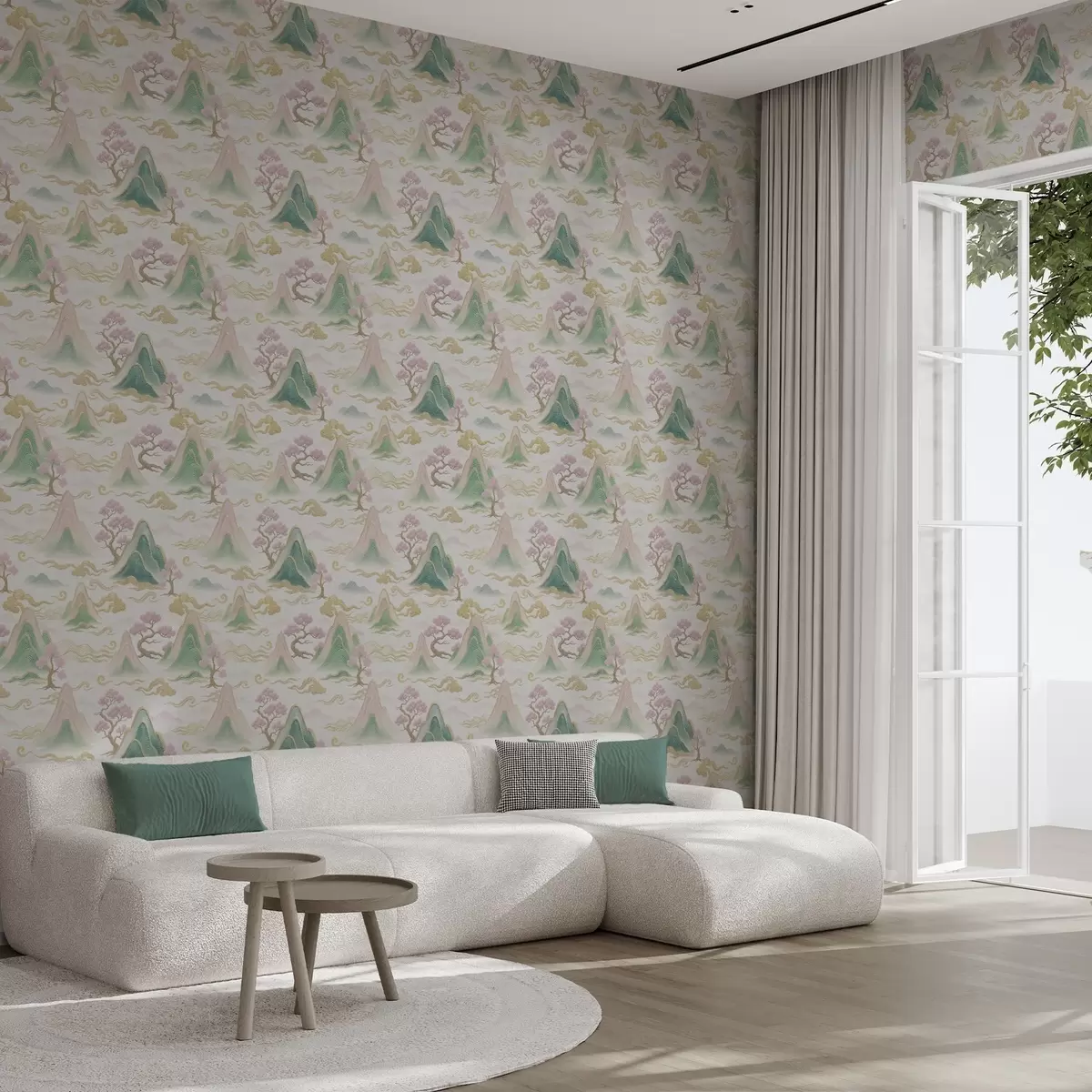 Papiers peints Montagnes, nuages et pins dans un style décoratif oriental Nr. a00703