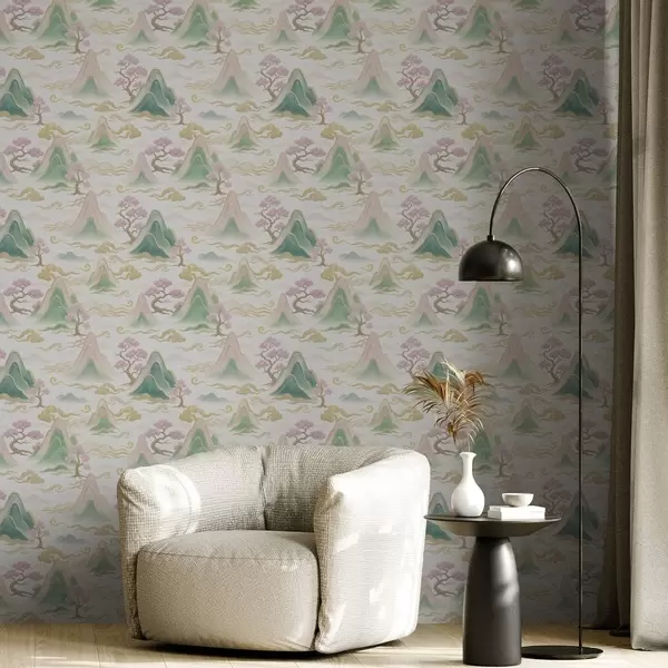 Papiers peints Montagnes, nuages et pins dans un style décoratif oriental Nr. a00703