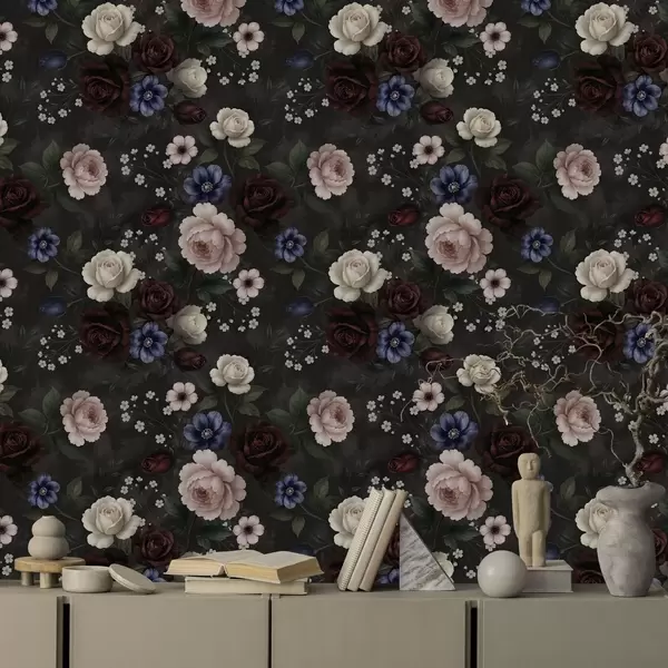 Papiers peints Roses foncées, anémones et pivoines sur fond sombre Nr. a00704