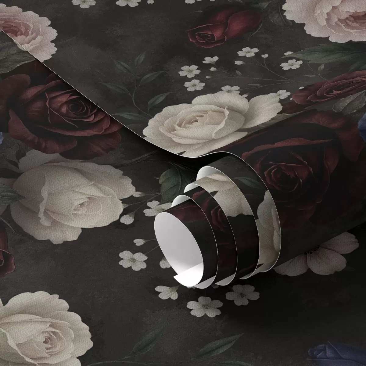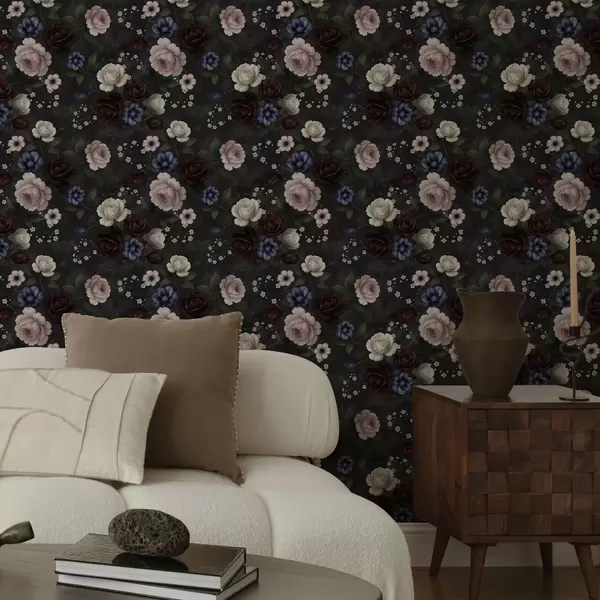Papiers peints Roses foncées, anémones et pivoines sur fond sombre Nr. a00704
