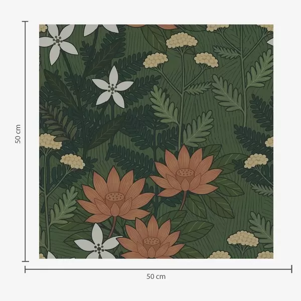 Papiers peints Grandes fleurs parmi le feuillage vert, composition décorative Nr. a00708