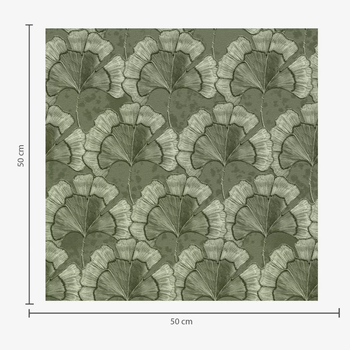 Papiers peints Motif graphique avec des ginkgos dans une palette de verts froids Nr. a00709