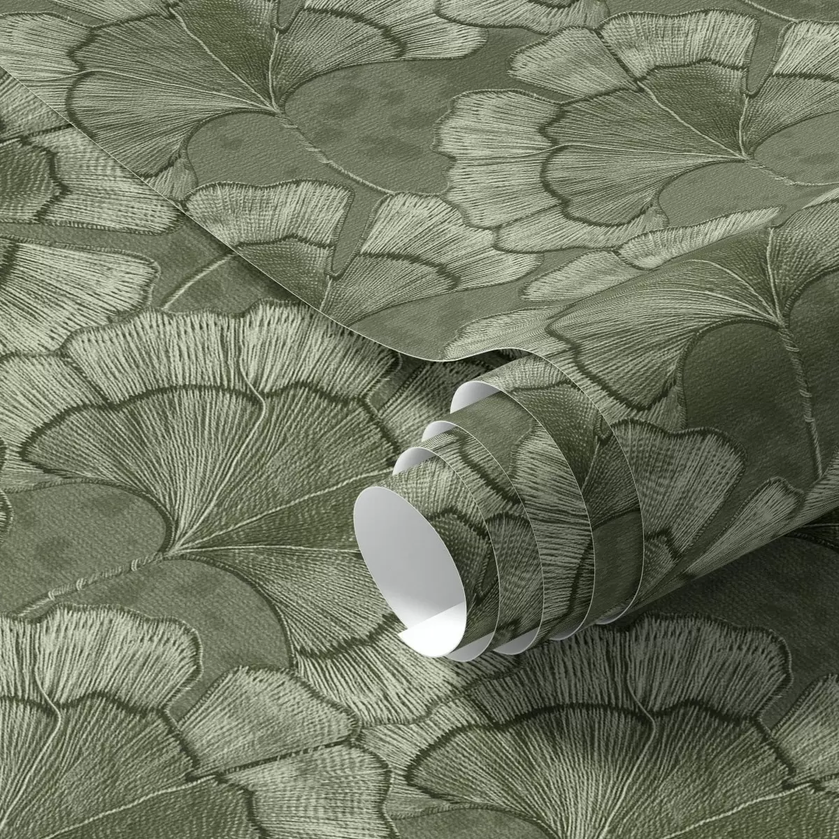 Papiers peints Motif graphique avec des ginkgos dans une palette de verts froids Nr. a00709