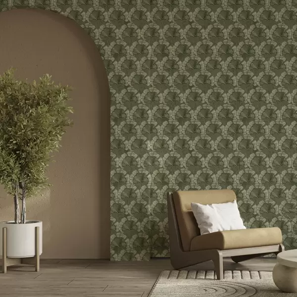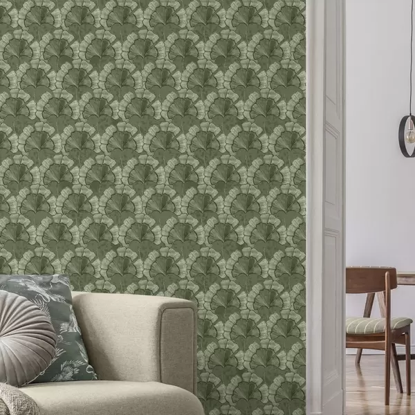 Papiers peints Motif graphique avec des ginkgos dans une palette de verts froids Nr. a00709