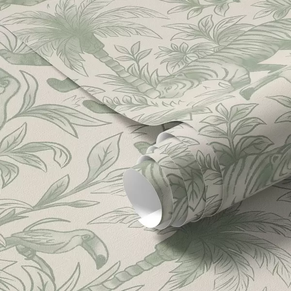 Papiers peints Tigres et oiseaux tropicaux parmi les palmiers sur fond clair Nr. a00711