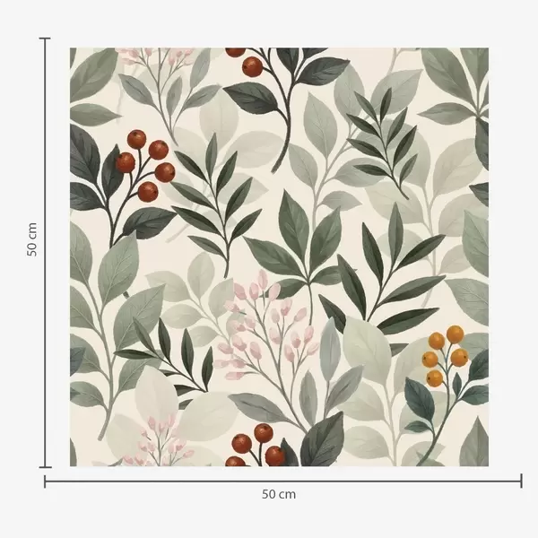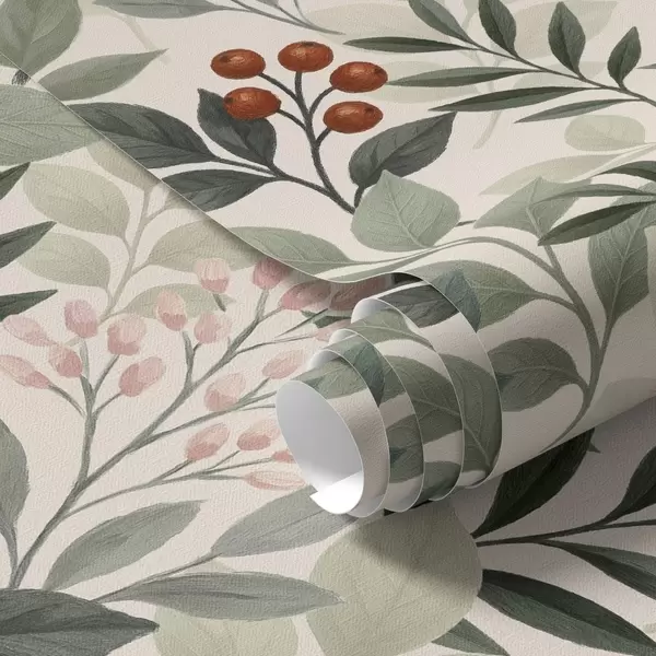 Papiers peints Feuilles avec baies, fond clair Nr. a00713