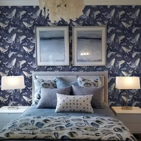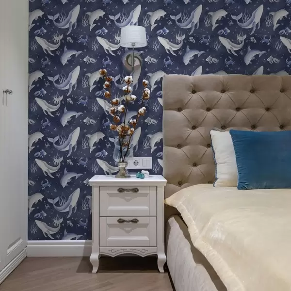 Papiers peints Baleines, dauphins et crabes sur fond bleu foncé Nr. a00720