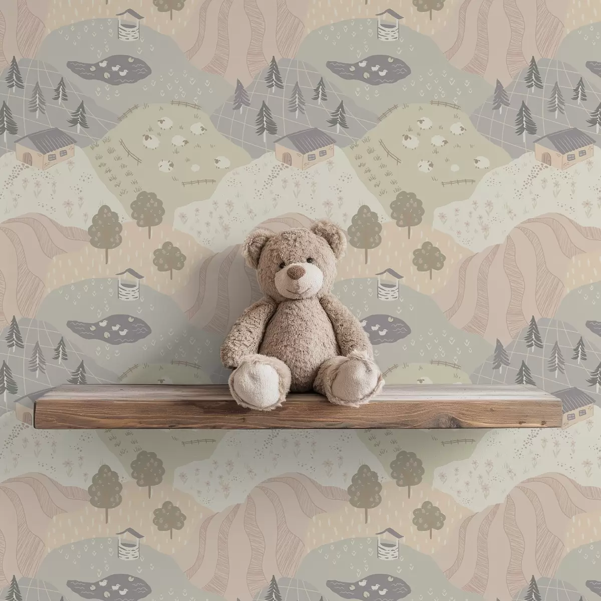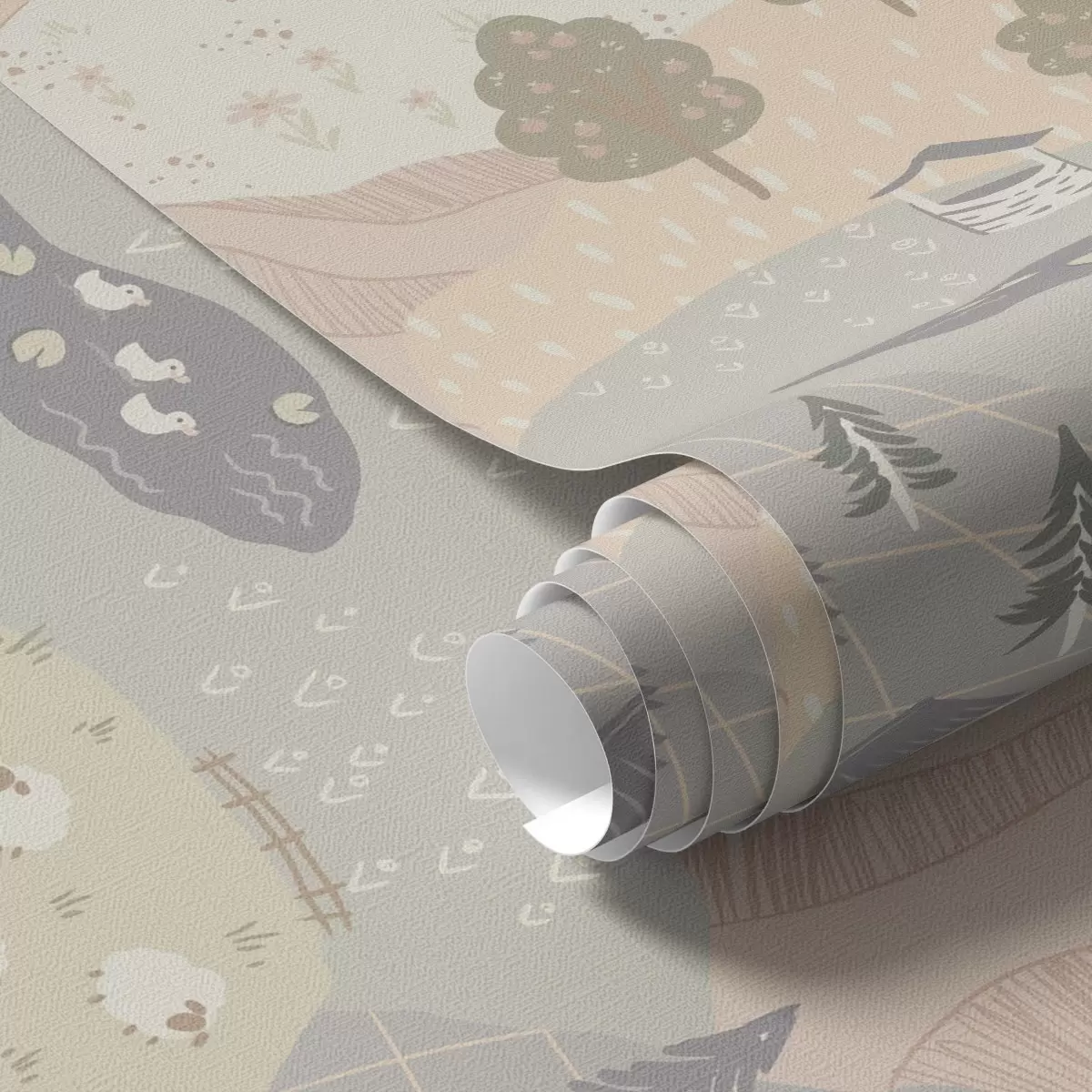 Papiers peints Une campagne féérique avec des arbres, des oies et des moutons Nr. a00728