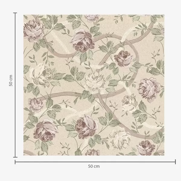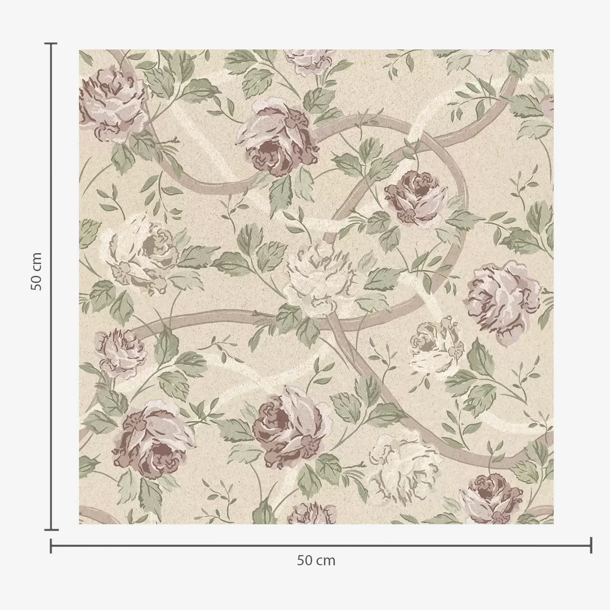 Papiers peints Roses avec des feuilles vertes sur un fond beige chaud Nr. a00729