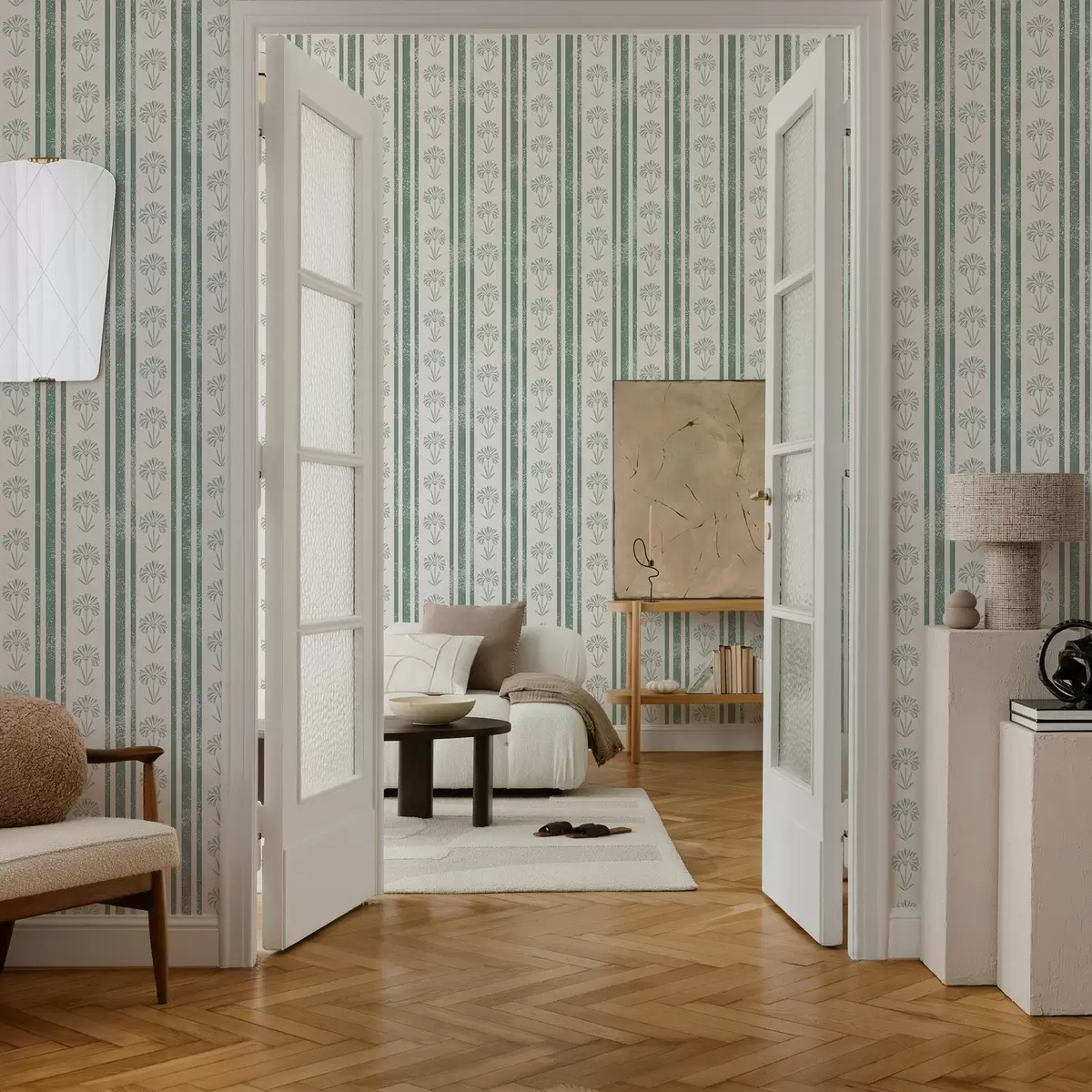 Papiers peints Motif ruban avec fleurs dans les tons verts Nr. a00732