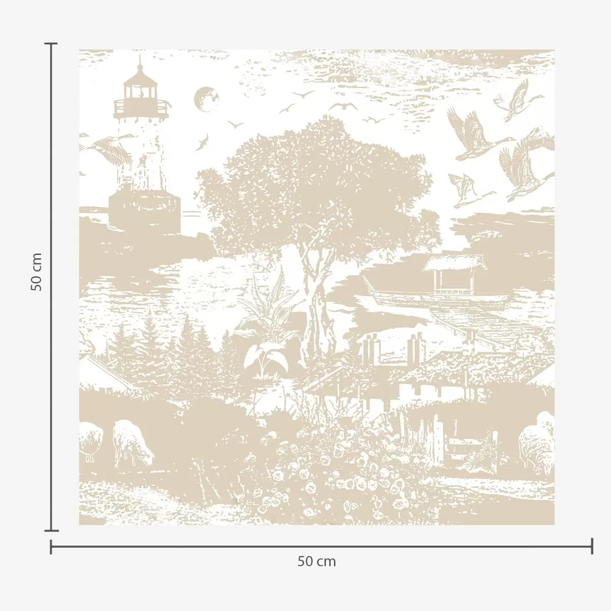 Papiers peints Scène avec phare, arbres et maisons en terre de Sienne Nr. a00739