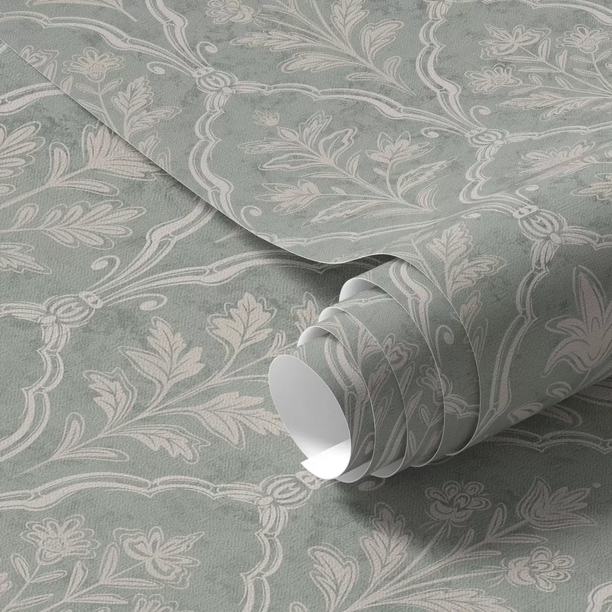 Papiers peints Damassé menthe avec fins médaillons floraux Nr. a00741