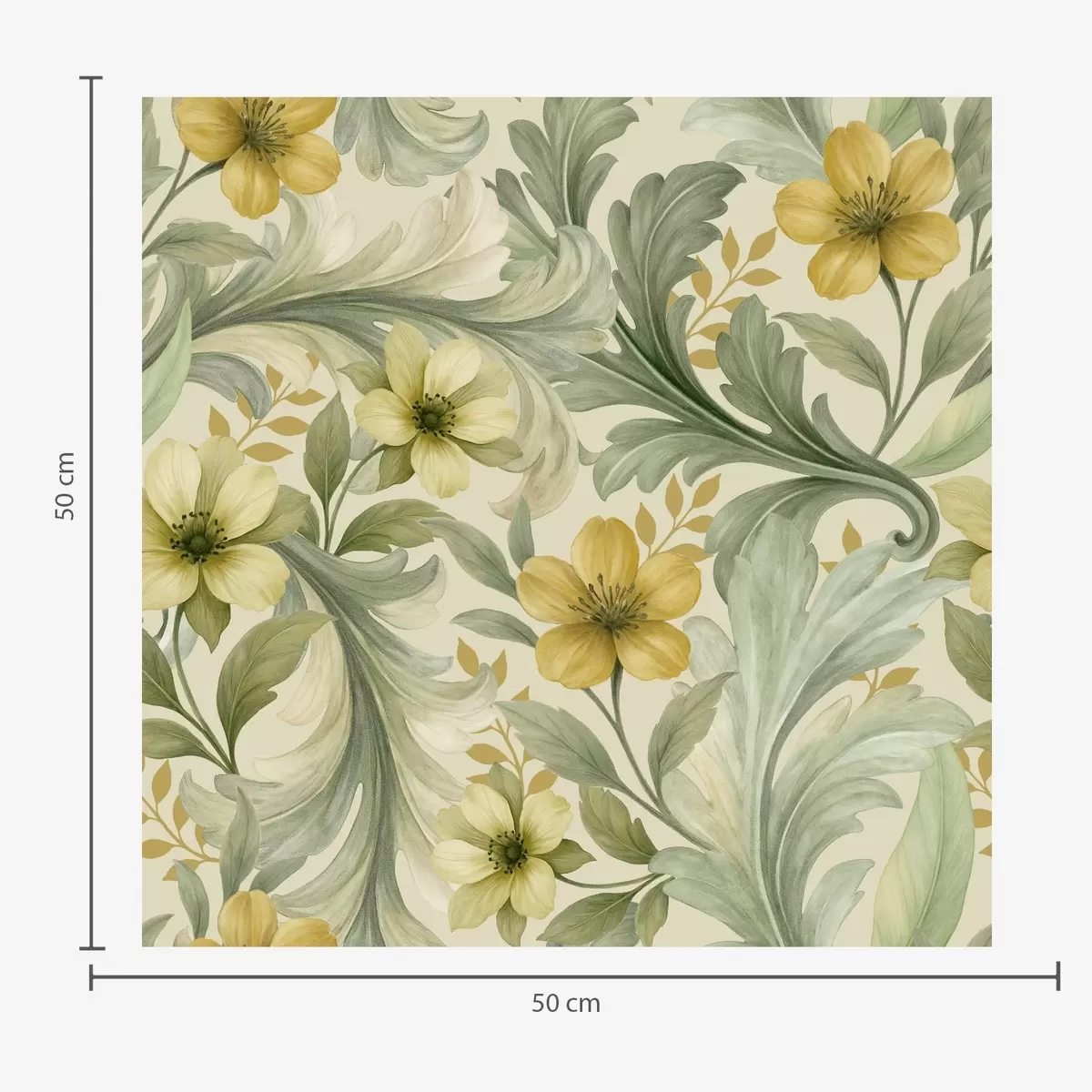 Papiers peints Volutes d'acanthe avec fleurs dans les tons verts et jaunes Nr. a00749