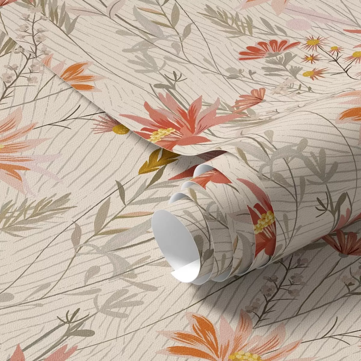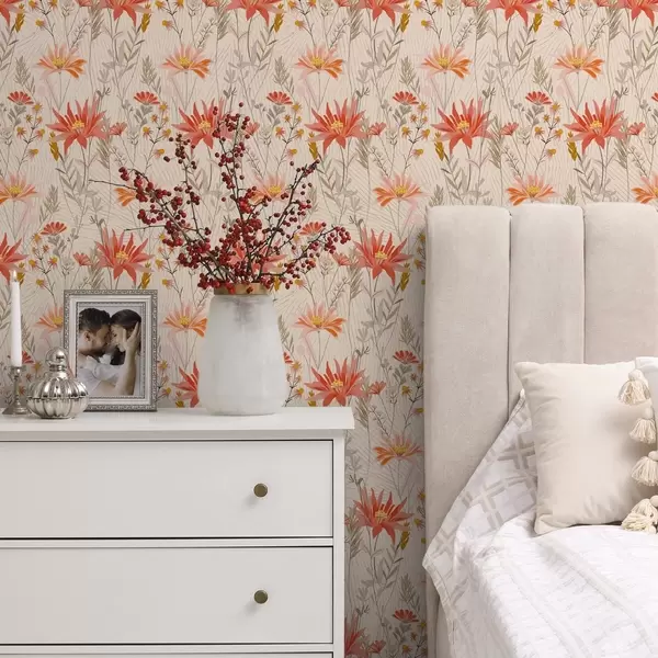 Papiers peints Fleurs sauvages aux tons chauds sur fond beige Nr. a00751