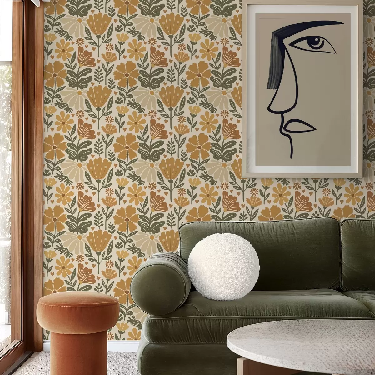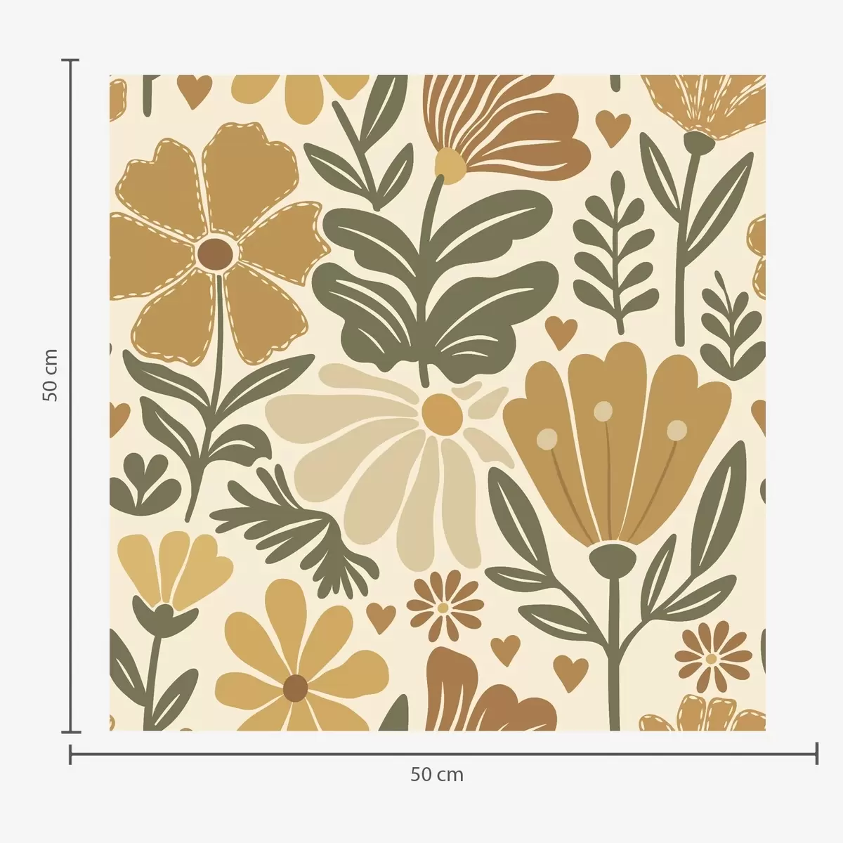Papiers peints Fleurs stylisées dans des tons chauds avec des cœurs Nr. a00752