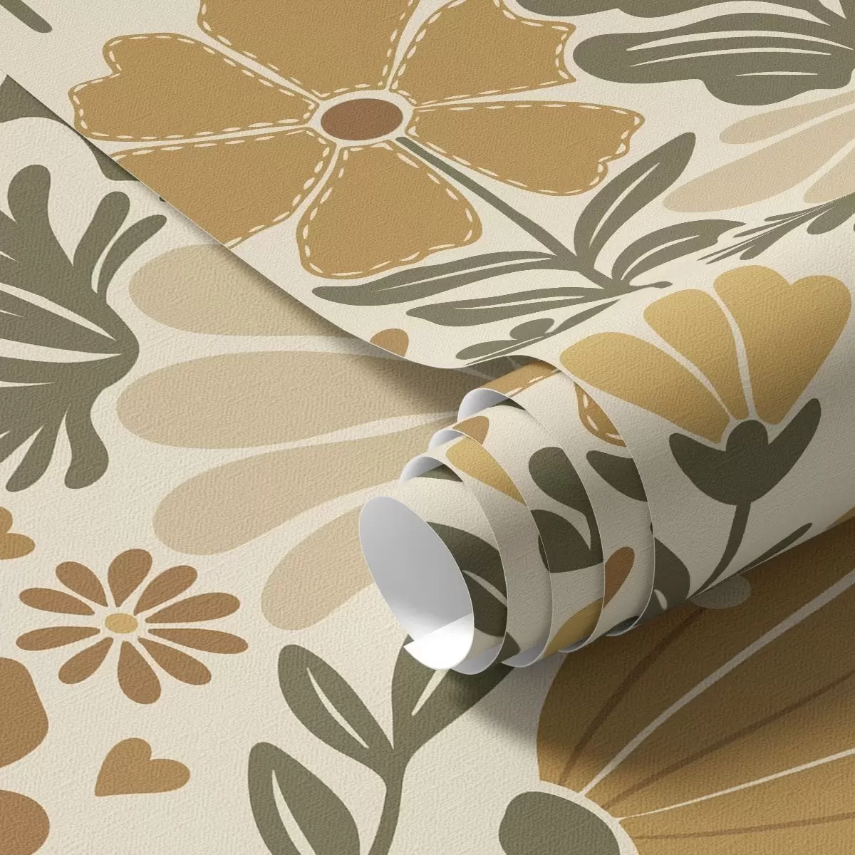 Papiers peints Fleurs stylisées dans des tons chauds avec des cœurs Nr. a00752