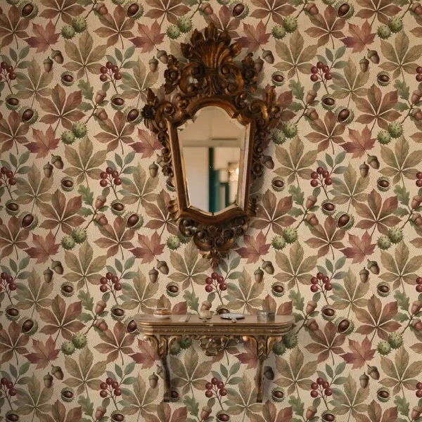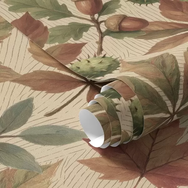 Papiers peints Feuilles d'automne, glands et baies sur fond beige Nr. a00754