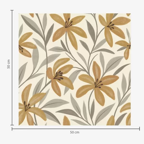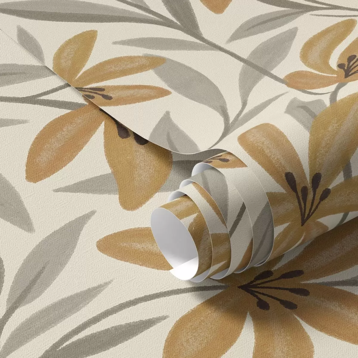 Papiers peints Lys jaunes et feuilles gris-vert sur fond clair Nr. a00757