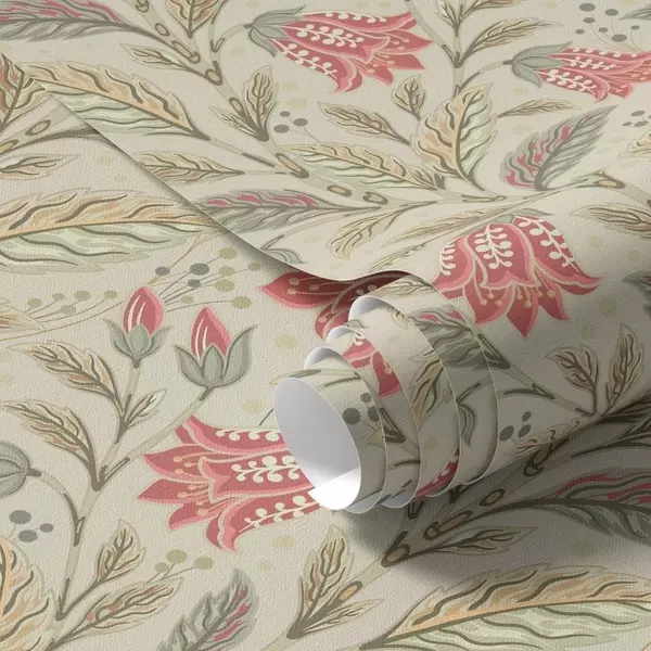 Papiers peints Petites fleurs en forme de clochettes dans une palette rose-vert Nr. a00760