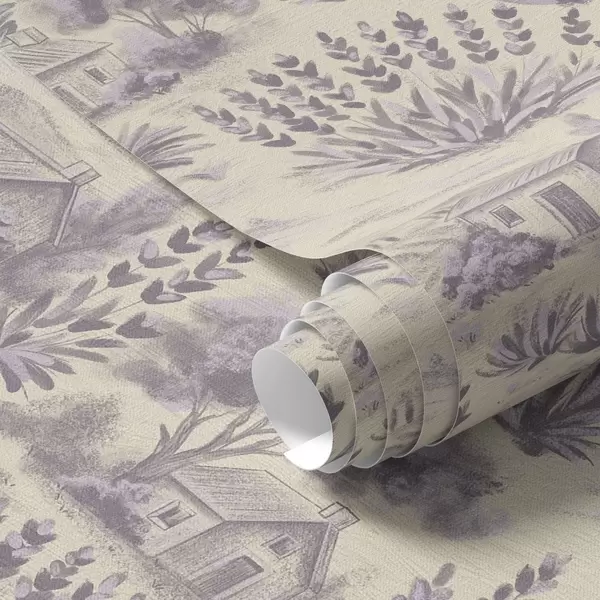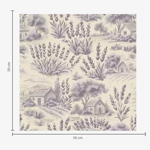 Papiers peints Champs de lavande et maisons aux tons pastel Nr. a00765