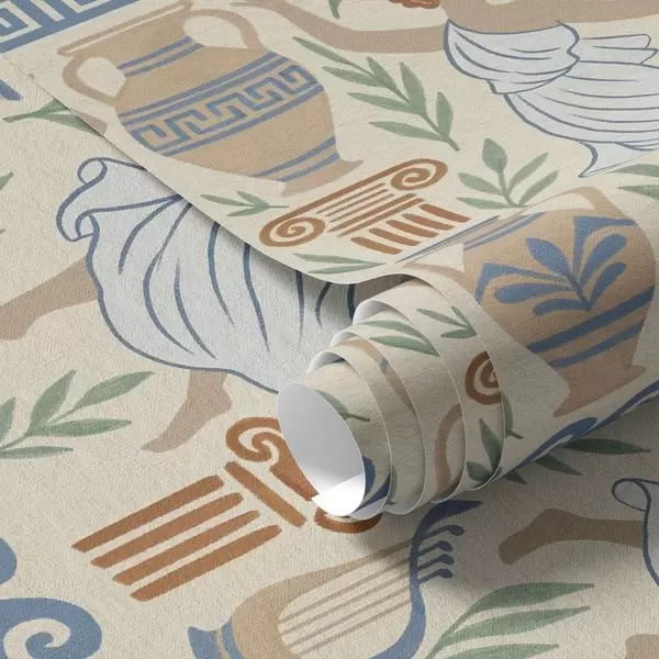 Papiers peints Ornement grec antique avec des personnages, des vases et des colonnes Nr. a00768