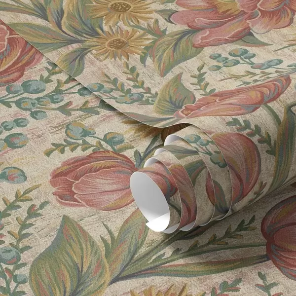 Papiers peints Tulipes et asters vintage, fond crème texturé Nr. a00773