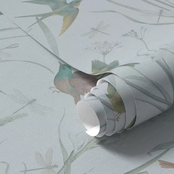 Papiers peints Oiseaux parmi les herbes des prairies sur un sol gris-bleu Nr. a00776