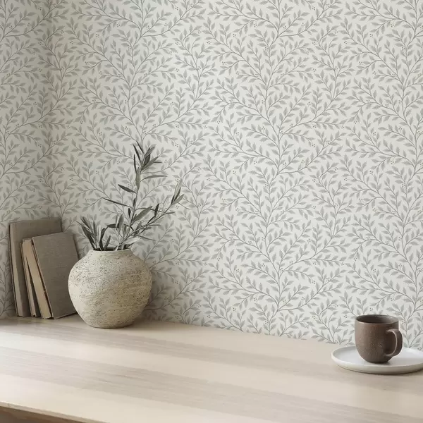 Papiers peints Branches avec feuilles et baies, crème claire et sauge Nr. a00783