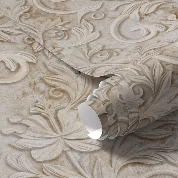 Papiers peints Relief en pierre avec volutes florales, beige vintage Nr. a00784