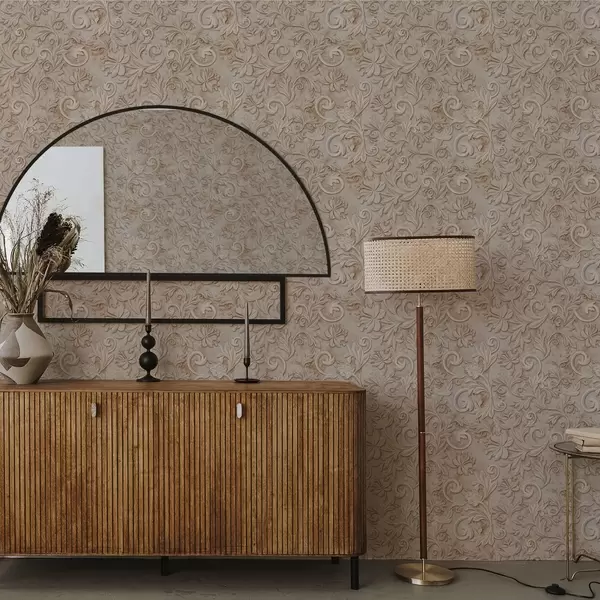 Papiers peints Relief en pierre avec volutes florales, beige vintage Nr. a00784