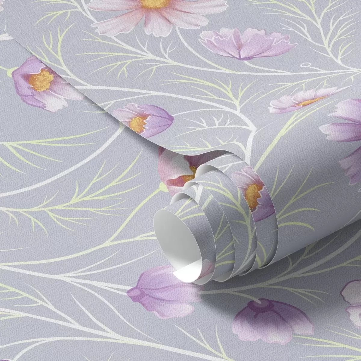 Papiers peints Cosmos roses et tiges élancées sur fond gris Nr. a00791