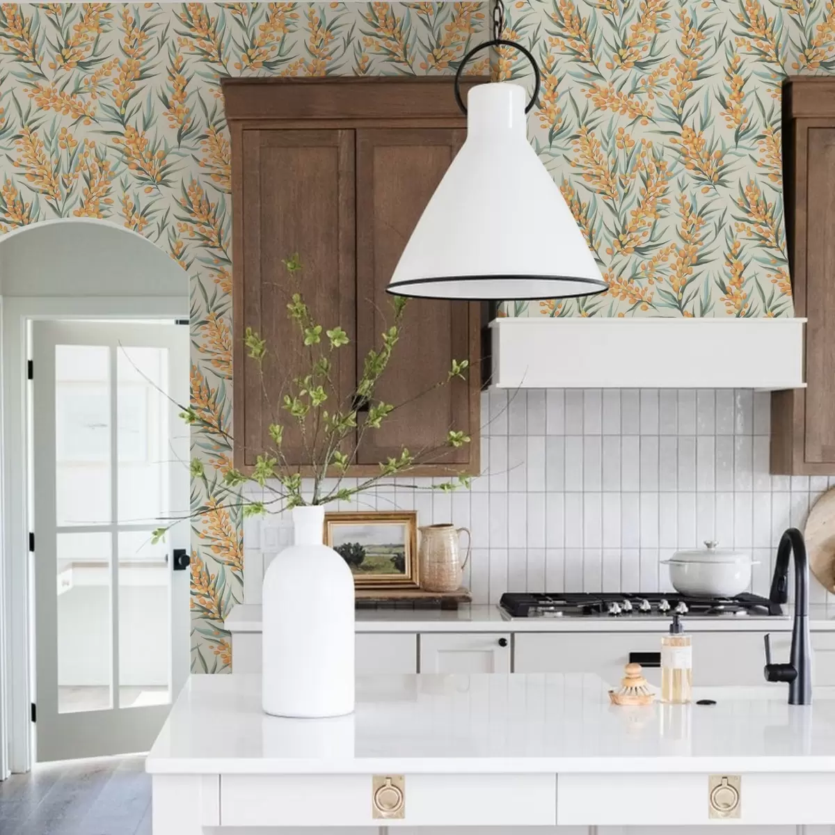 Papiers peints Branches d'argousier avec des baies orange, fond clair Nr. a00792