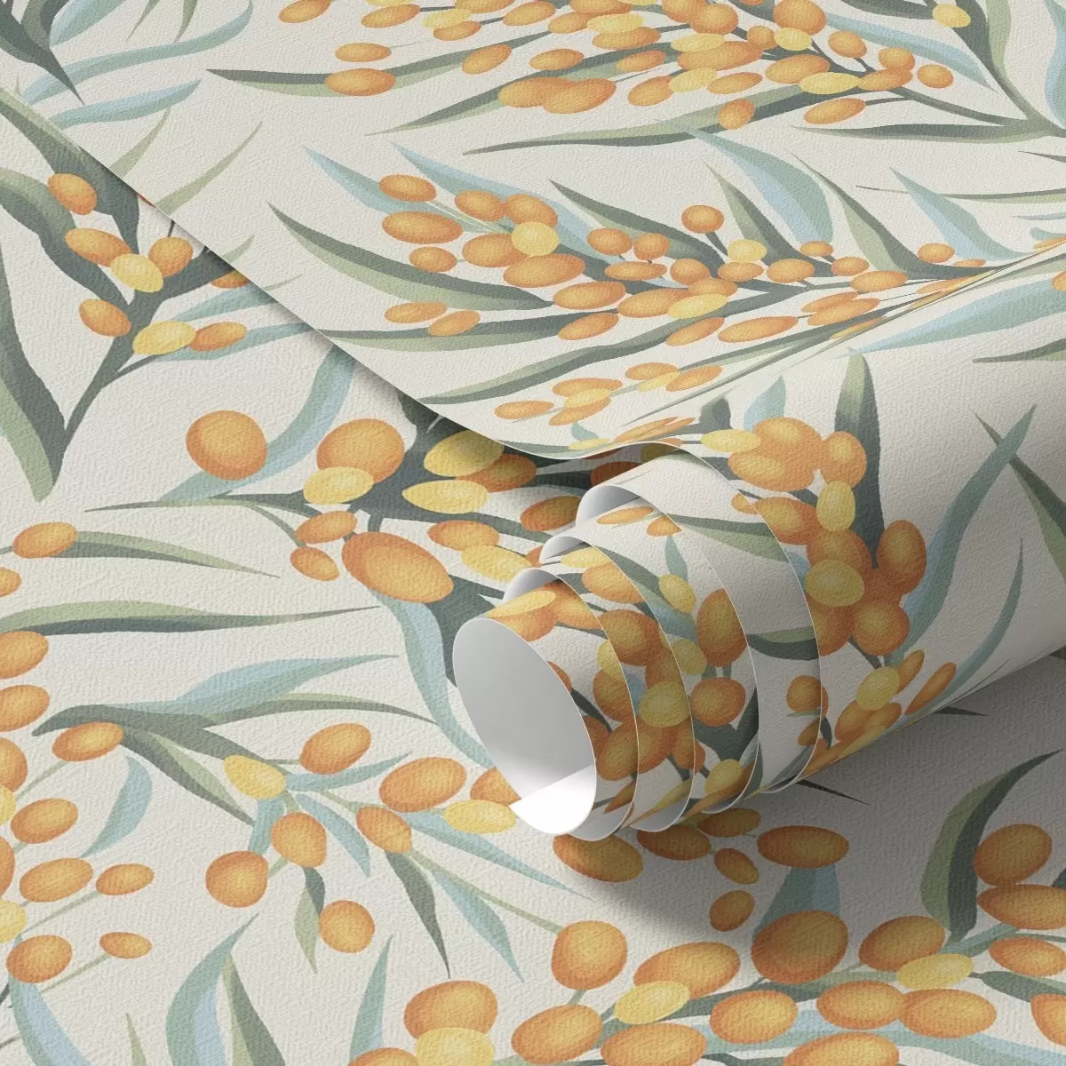 Papiers peints Branches d'argousier avec des baies orange, fond clair Nr. a00792
