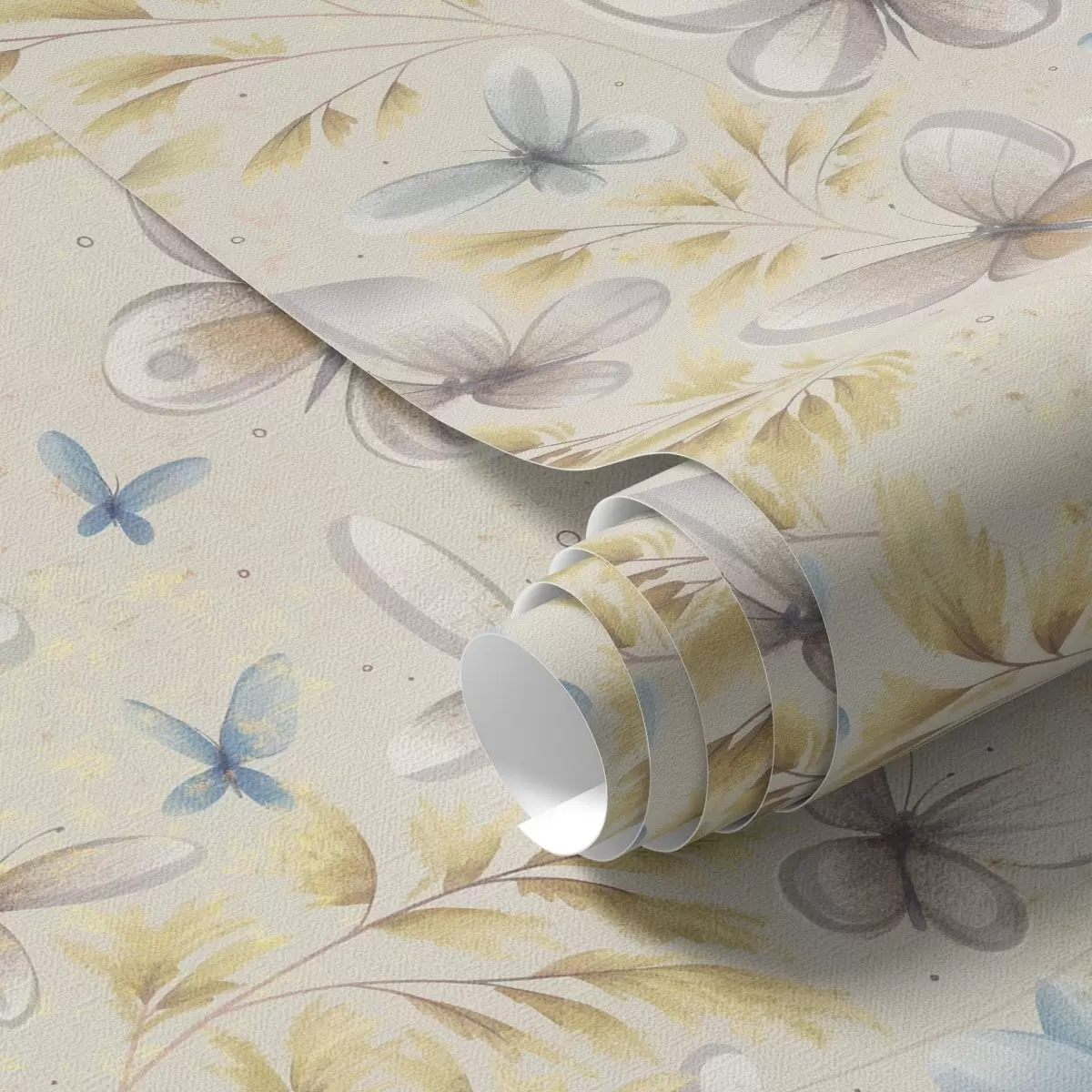 Papiers peints Papillons légers parmi des feuilles dorées sur un fond clair Nr. a00795