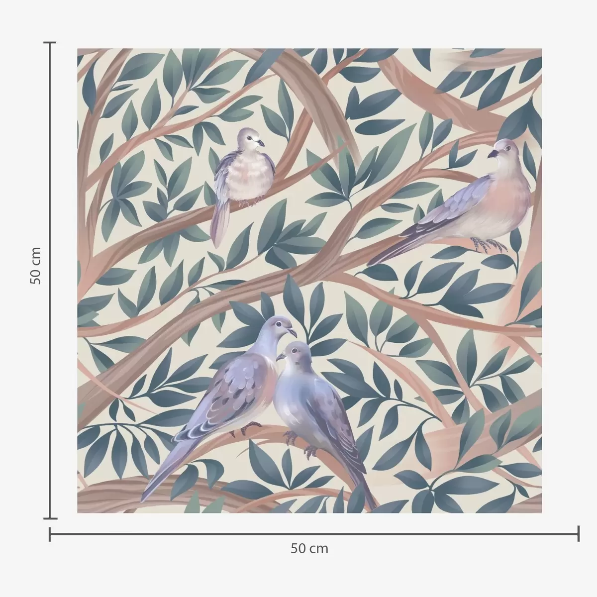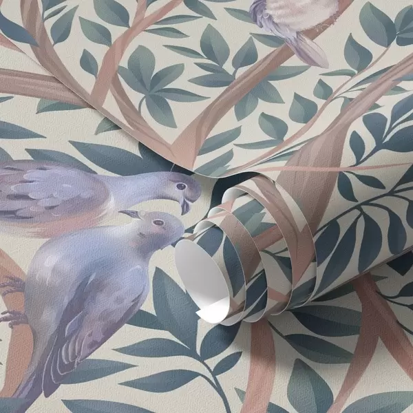 Papiers peints Des colombes parmi les branches et les feuilles dans une palette de couleurs pastel douces Nr. a00796