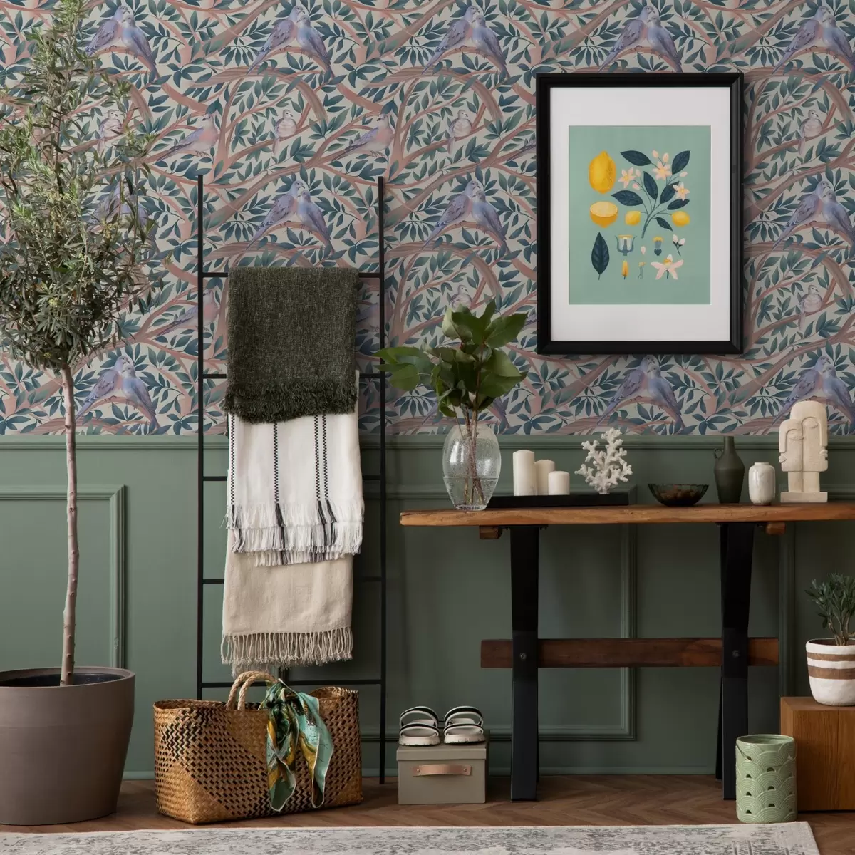 Papiers peints Des colombes parmi les branches et les feuilles dans une palette de couleurs pastel douces Nr. a00796
