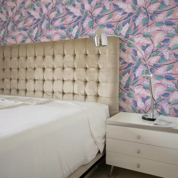 Papiers peints Délicates fleurs lilas sur fond rose, ambiance printanière Nr. a00797