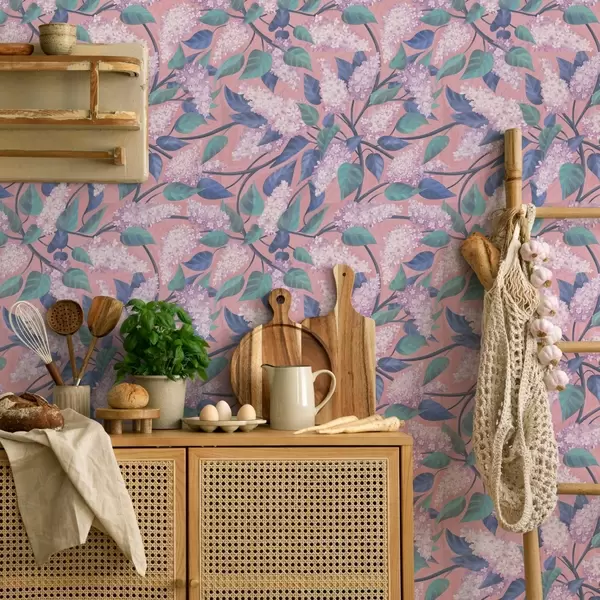 Papiers peints Délicates fleurs lilas sur fond rose, ambiance printanière Nr. a00797