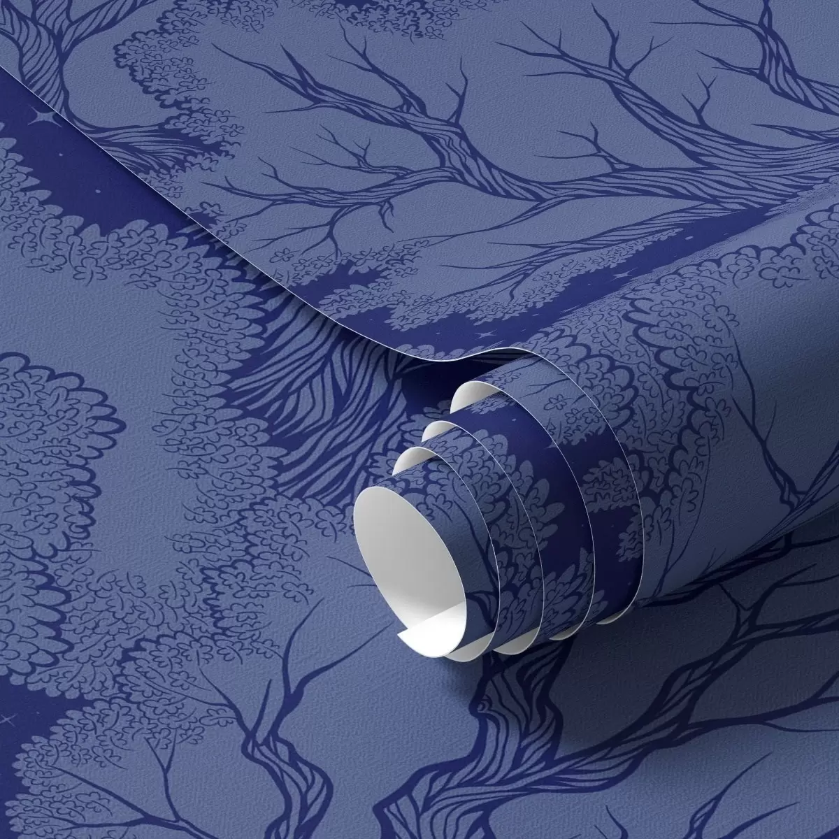 Papiers peints Silhouettes d'arbres sous un ciel étoilé dans des tons bleus Nr. a00798