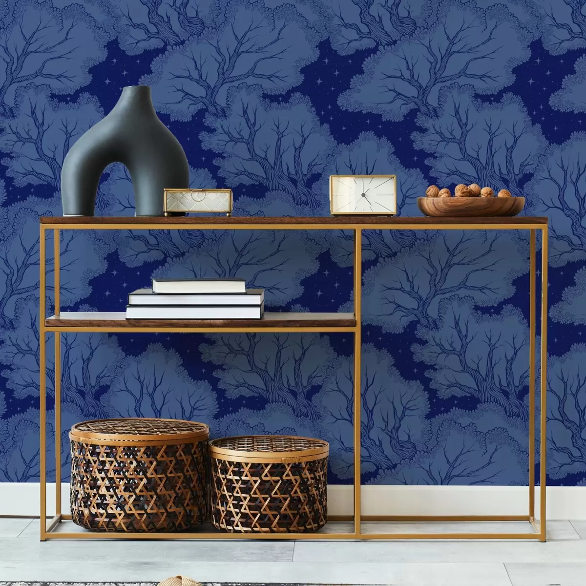 Papiers peints Silhouettes d'arbres sous un ciel étoilé dans des tons bleus Nr. a00798