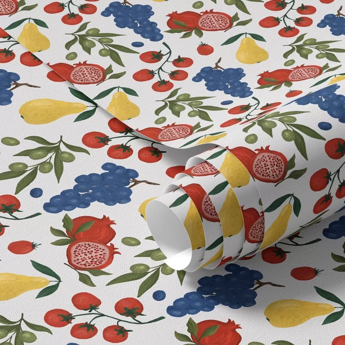 Papiers peints Fruits juteux : grenades, raisins, poires sur fond blanc Nr. a00801