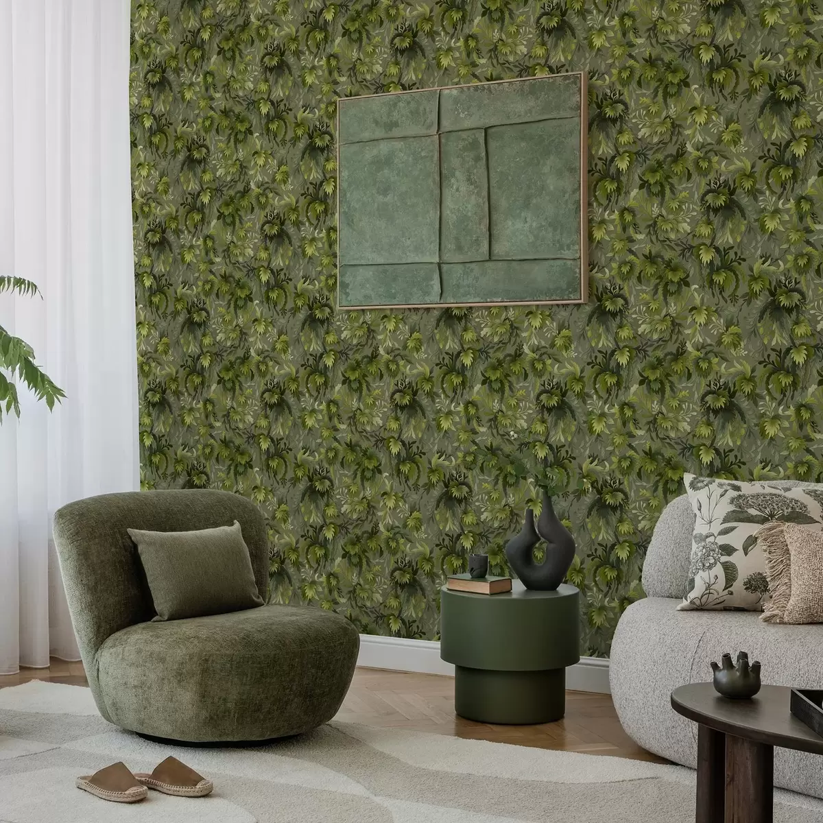 Papiers peints Feuillage vert dense sur fond gris-vert Nr. a00805v1