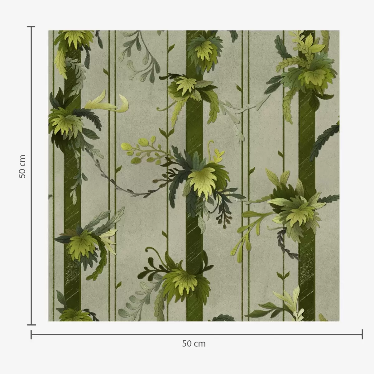 Papiers peints Feuilles vertes disposées en rayures verticales sur fond gris Nr. a00807v1
