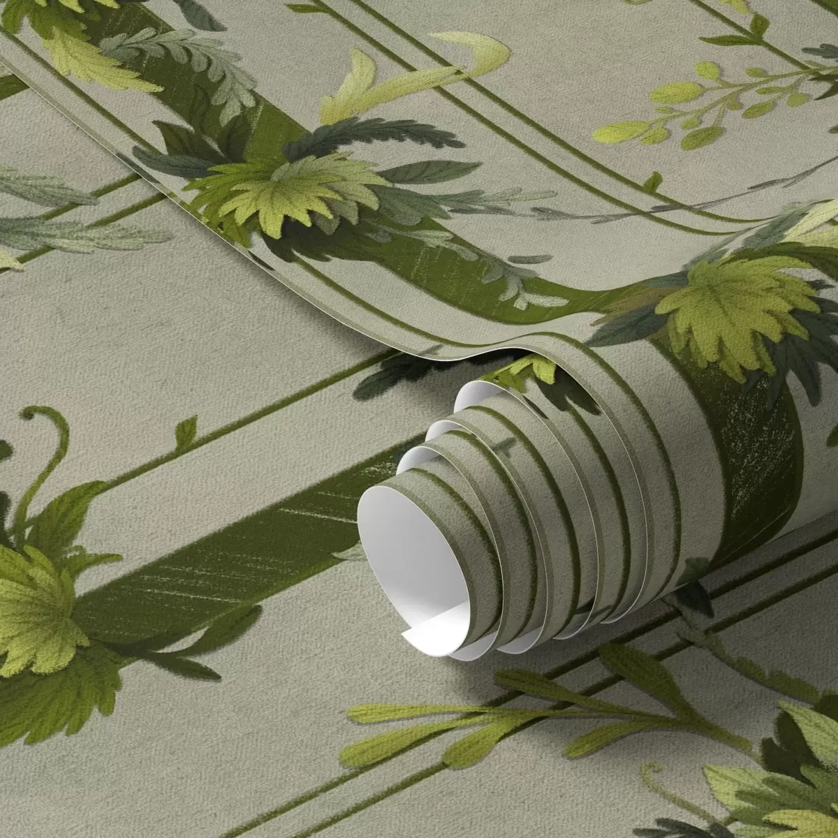 Papiers peints Feuilles vertes disposées en rayures verticales sur fond gris Nr. a00807v1