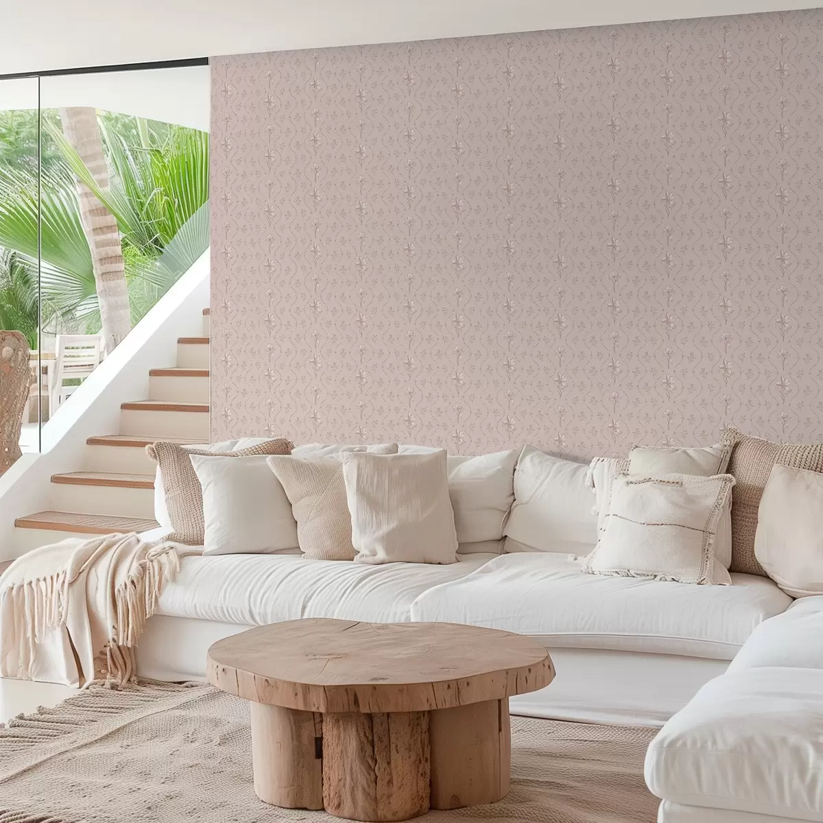Papiers peints Petites fleurs et rubans dans des tons doux de rose et de beige Nr. a00808