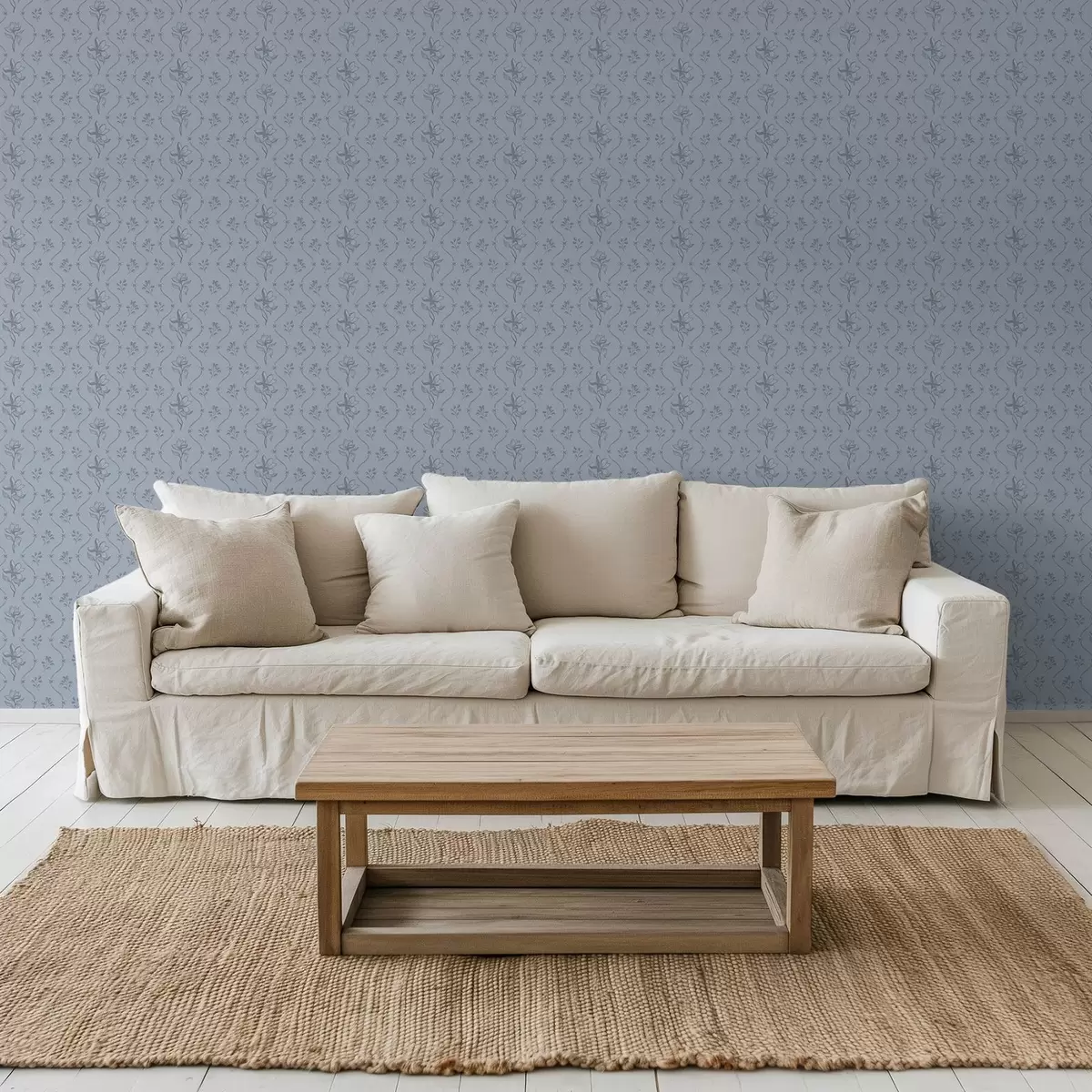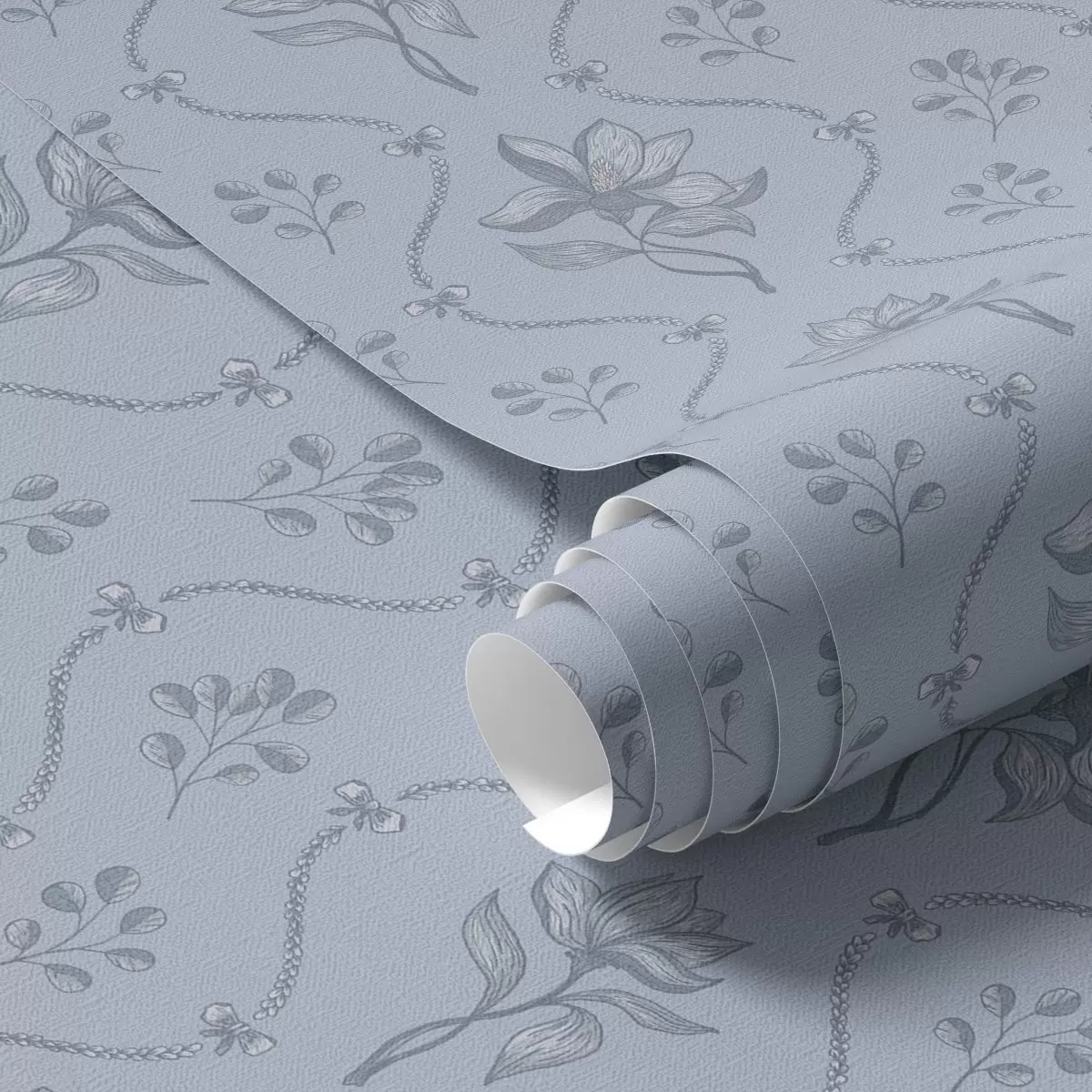 Papiers peints Petites fleurs et rubans dans une palette gris-bleu Nr. a00808v2