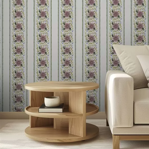 Papiers peints Rayures florales verticales dans les tons bleu lilas Nr. a00809